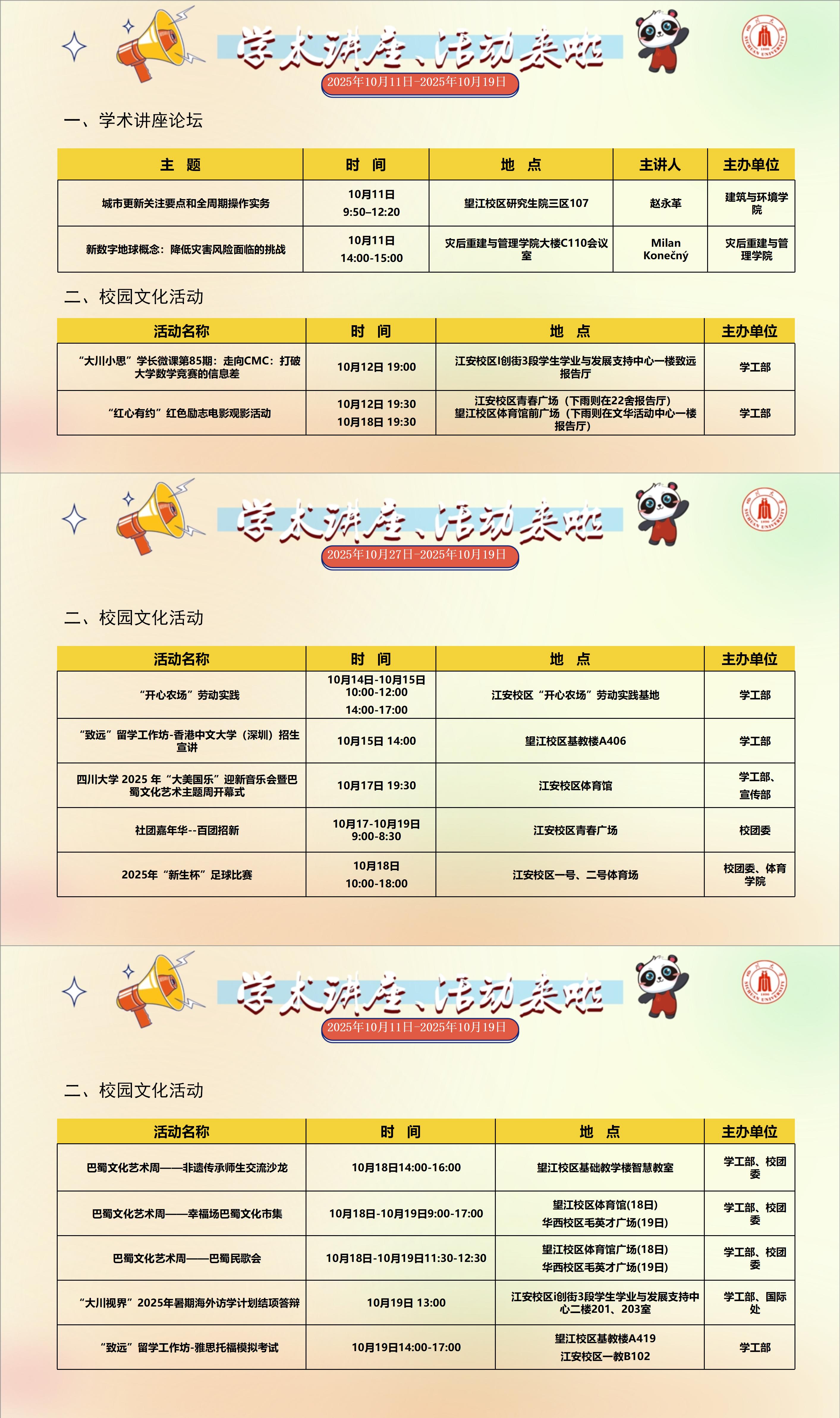 四川大学学术讲座、校园文化活动预告(2025年10月11日-10月19日)