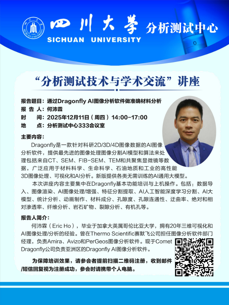 “分析测试技术与学术交流”讲座——通过Dragonfly AI图像分析软件做准确材料分析