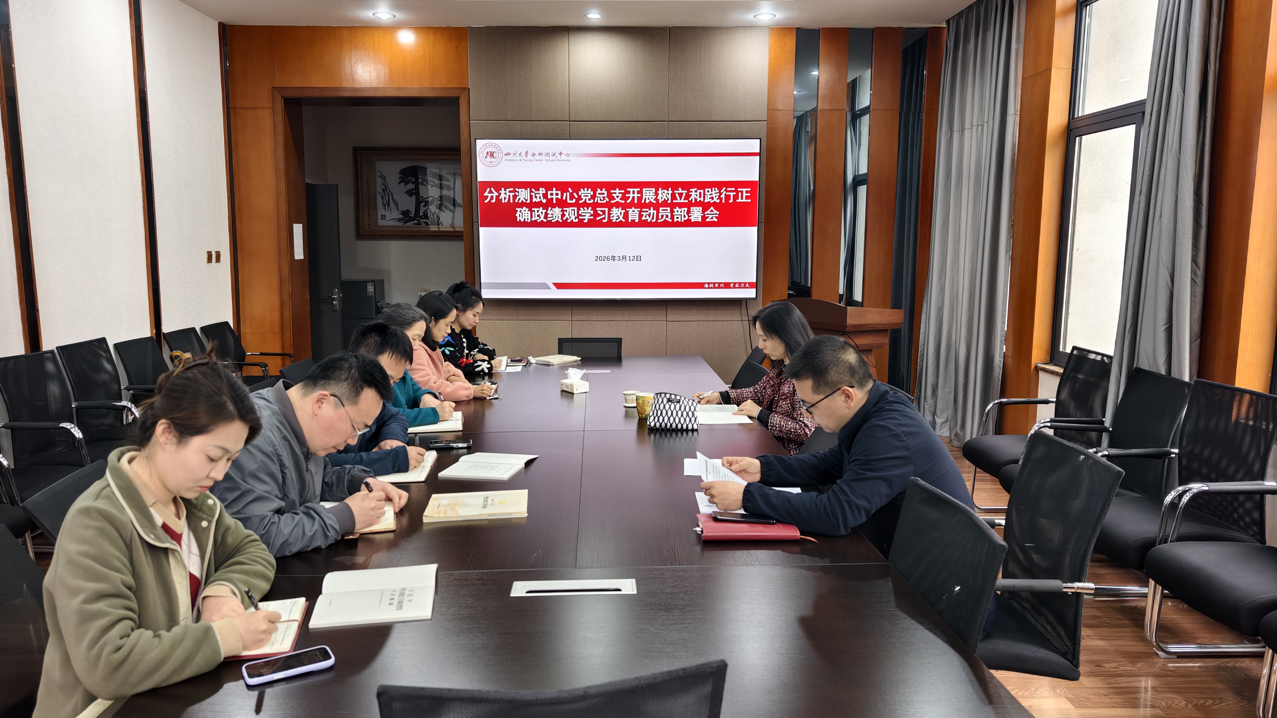 3月12日下午,分析测试中心召开党总支扩大会议,对开展树立和践行正确政绩观学习教育进行动员部署。中心领导班子、党总支委员、党支部书记等参加会议,会议由中心党总支副书记、纪检委员谭新禹主持。